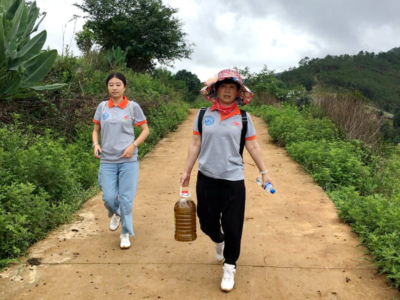 “我们所去的三个乡村很偏远,道路也难走,下车后我们还要背着米、油走两三个小时山路。每天天不亮出发,晚上七八点才回到驻地。”