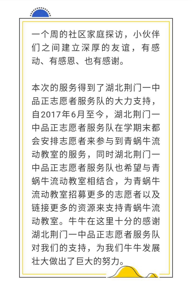 6月22日,荆门一中品正志愿者教师杨君、黄章艳远赴云南,参加昆明市“青蜗牛流动教室”支教项目活动。经过行前培训,她们与来自全国其它地方的志愿者组成5人活动小组,走进昆明市禄劝县九龙镇三个偏远的彝族、苗族村落开展流动教室支教活动。她们克服重重困难,进入家庭探访,为贫困学生建档立卡,送去慰问物质;深入课堂食堂,帮助孩子阅读,体验生活疾苦,用爱心为贫困地区的孩子们带去希望,点亮梦想。