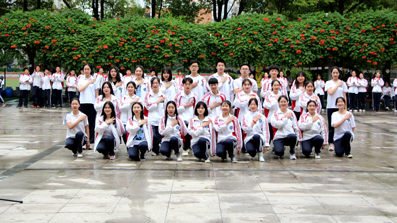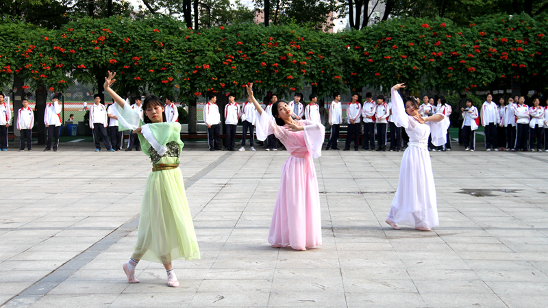 5月29-30日课外活动期间,高一、二音乐生在三号楼前,以快闪形式为高三、初三毕业生缓解压力。