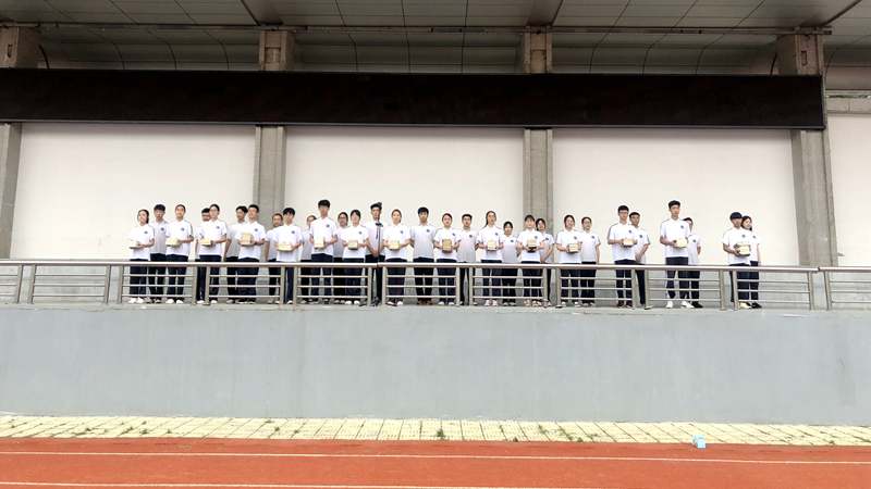 6月2日,毕业生齐聚运动场,在家长、班主任的陪伴和领导老师的见证下,穿过成人门,面对国旗庄严宣誓,宣告自己成为一个品行端正的责任公民。