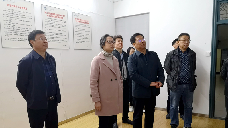 湖北省教育考试院科技办副主任王红玉、综合科科长胡冰彦,市教育局副局长杨斌,市招生考试局局长王书虎等领导陪同检查调研。副校长马斌参加上述活动。