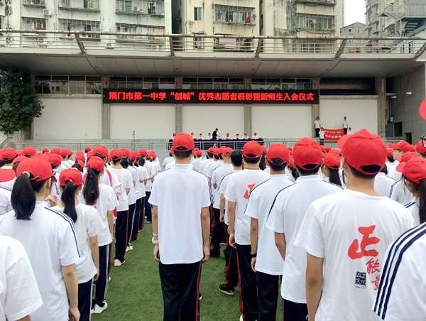 9月30号,我校师生隆重举行“创城”优秀志愿者表彰暨新师生入会仪式。团市委副书记谢家猛、市教育局副局长张志鹏、市委文明办科长张小梅、市义工联会长彭于柏、浏河社区居委会主任苏玉梅及学校班子成员出席会议。