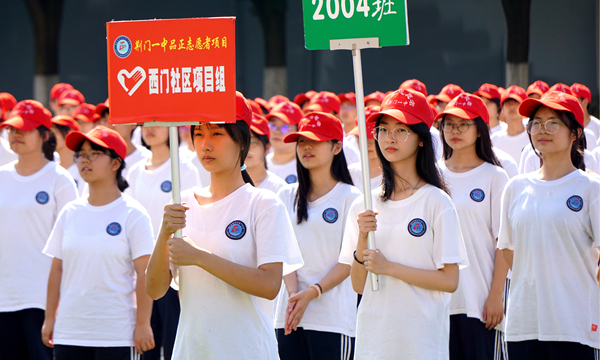 会后,全校师生组成55个志愿项目小组,深入社区开展形式多样的志愿服务活动,喜迎祖国72华诞。