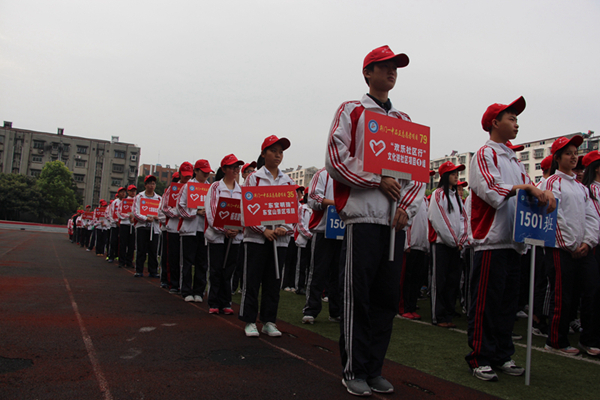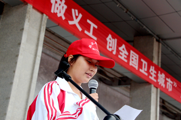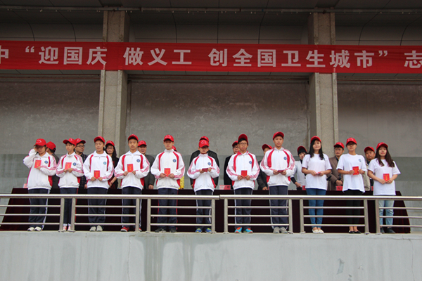 9月30日,“迎国庆,做义工,创全国卫生城市”志愿者大会在荆门市一中举行。
