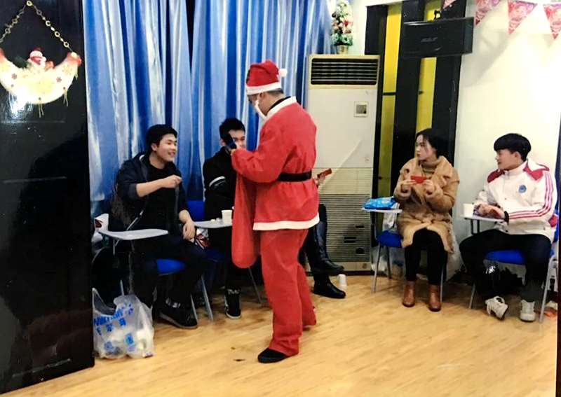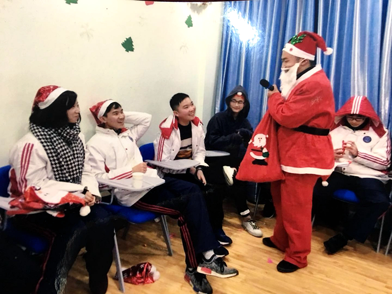 12月24日晚,国际部全体师生欢聚一堂,共庆圣诞。活动开始时,由外教扮演圣诞老人,首先给孩子们讲述了圣诞节的来历和习俗,告诉孩子们,在西方是如何庆祝圣诞节的。然后按照西方的礼仪和习俗,圣诞老人提着长筒袜,给每个孩子都分发了礼物,还给每个孩子一张卡片,让他们在卡片上写下自己的愿望,挂在圣诞树上,共同祈祷愿望变成现实。整个活动期间,师生同乐,做游戏、唱歌、跳舞、讲笑话,虽是自娱自乐,却似一个大家庭,团结和谐,亲密无间,其乐融融。同学间的友谊更加深厚了,而且更加拉近了师生间的距离,师生更加亲密和谐了。
