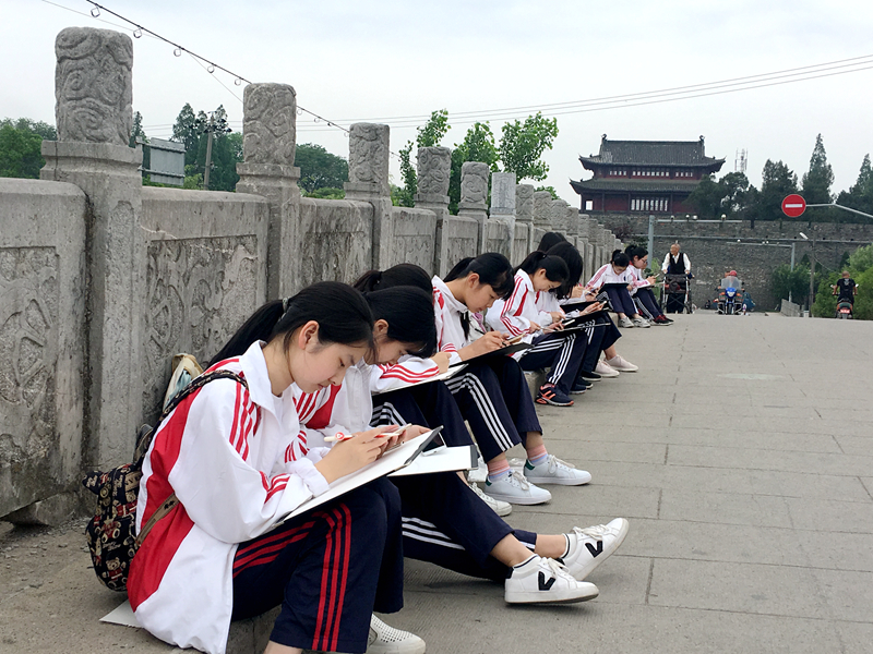 5月10、11日两天,荆门一中高一全体美术生300余人前往荆州古城进行户外风景写生。写生地点集中在荆州大北门景区、三国公园和古玩城三处地点,各班按时轮换场地。活动中,同学们仔细观察,认真构图,将教室里学到的专业技法应用到实际创作中;专业教师悉心指导示范,教学生如何观察、取景、用笔等。此次写生活动旨在提高学生在自然环境中的观察与创作能力,是专业教学过程中不可缺少的环节。